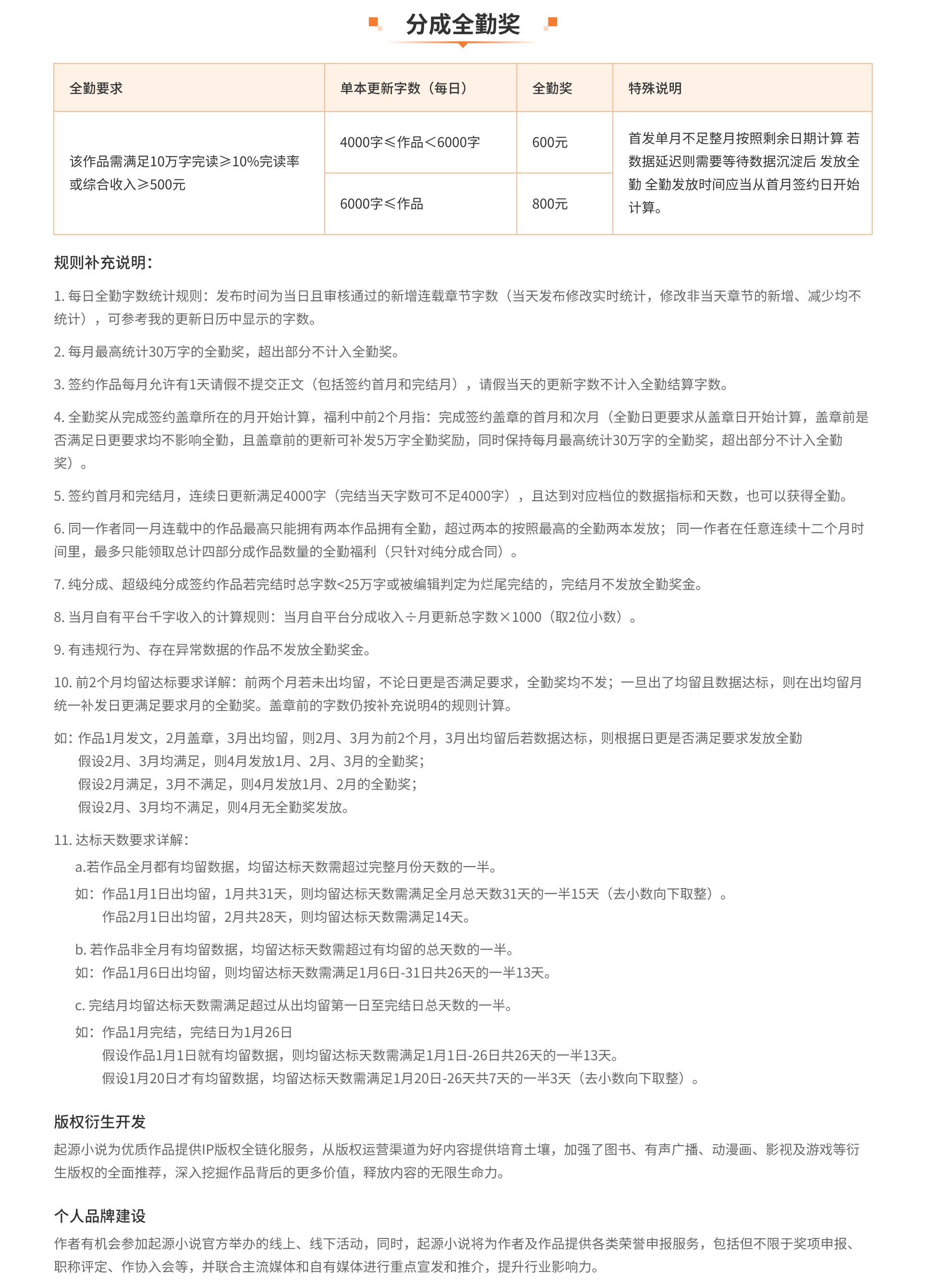 分成全勤奖